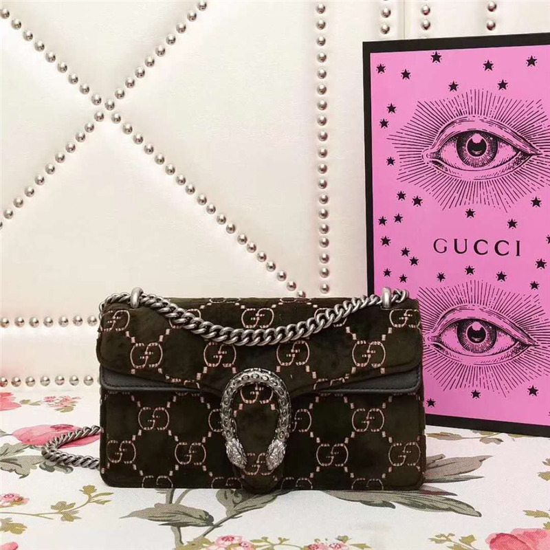 • 499623 Dionysus系列 GG天鵝絨 織紋虎頭扣 鏈條肩包 橄欖綠
