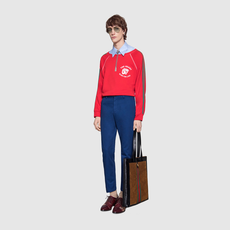 • 詳細介紹:始創于1950年代的Gucci條紋織帶,一直是品牌本源的象征,該設計最早受馬術影響,取材自將馬鞍固定到馬匹的帶子。這款大購物袋采用無襯里設計,醒目的紅綠配色飾帶貫穿袋子的中心。柔軟麂皮搭配裂紋皮革,品牌經典元素的加入讓重新登場的復古風格更加濃郁,牢牢扣住2018春夏系列主打的懷舊之風。