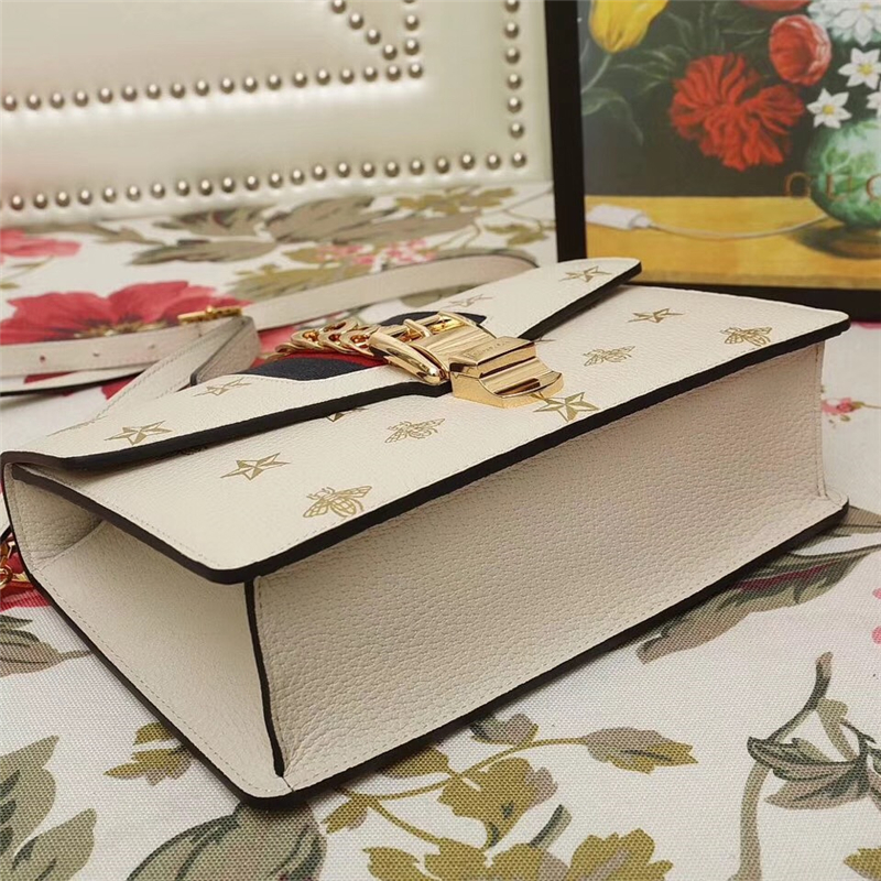 524405 Gucci Sylvie系列蜜蜂星星小號肩背包 古馳單肩包 白色