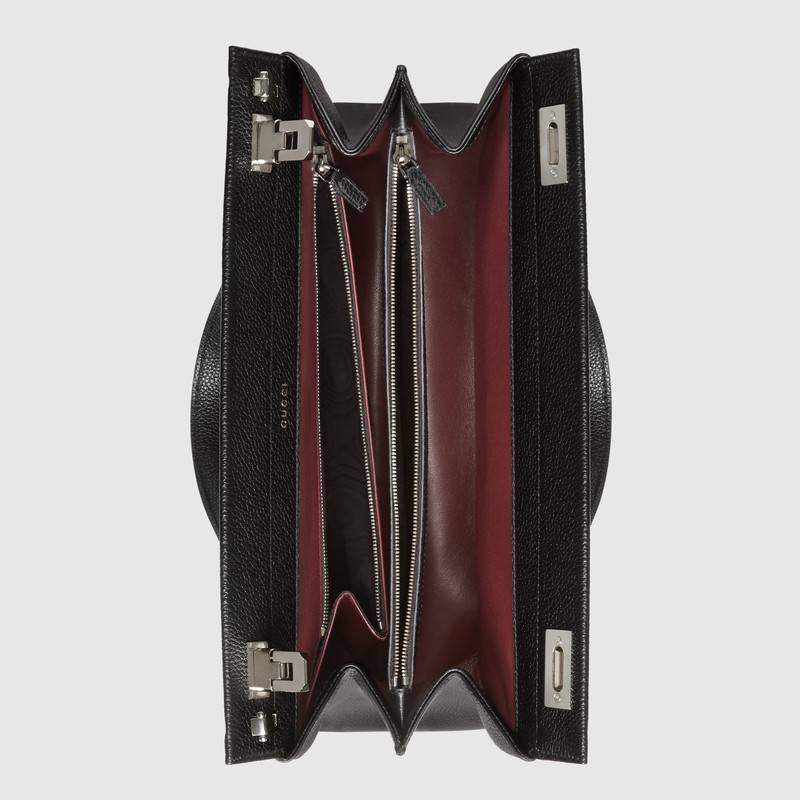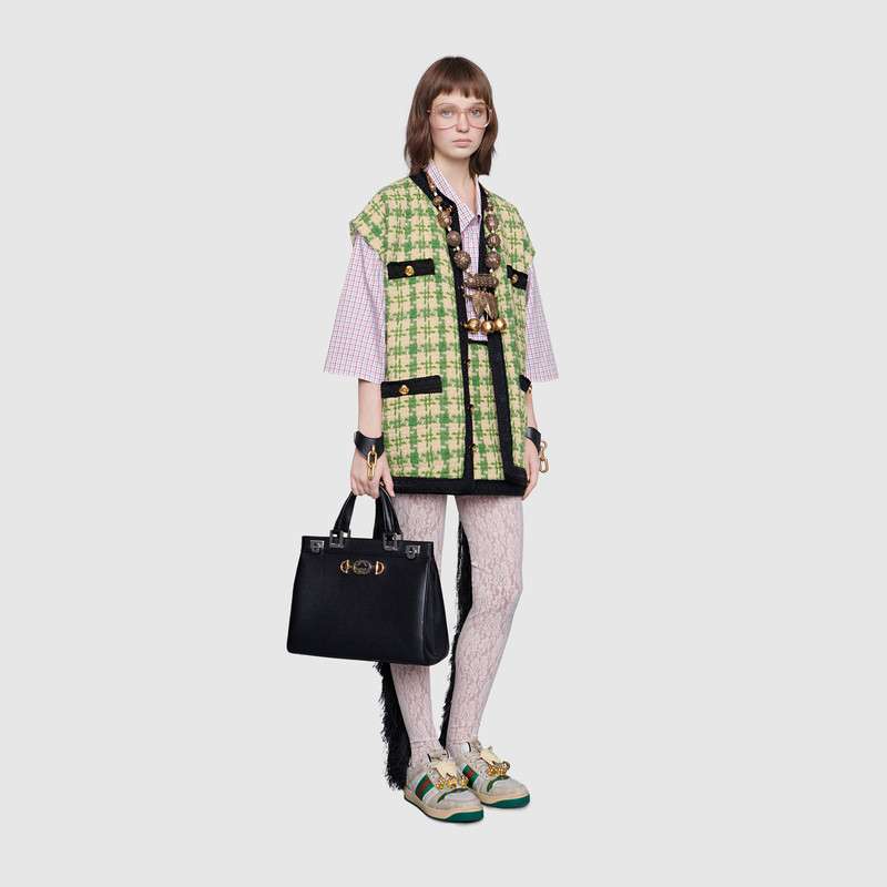 - 詳細(xì)介紹:Gucci不斷以別出心裁的方式將品牌標(biāo)識引領(lǐng)至?xí)r尚前沿,本季中將互扣式G與馬銜扣這兩個頗具辨識度的品牌元素合二為一。銀色調(diào)和金色調(diào)以現(xiàn)代風(fēng)格混搭,呈現(xiàn)于這款粒面皮革手提包的配件上。可拆卸背帶賦予這款手提包多功能屬性,使其可兼作肩背包使用,頂部開口兩側(cè)各飾有一枚鉸鏈鎖扣,確保安全開合。Gucci Zumi系列的名稱源自女演員兼實驗音樂家Zumi Rosow,不落窠臼的摩登造型突破傳統(tǒng),流露出與生俱來的自由氣息,Zumi的個性造型與手袋簡約精致的細(xì)節(jié)相得益彰。