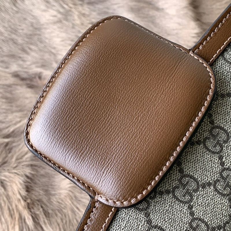 - 結構:米色/烏木色GG Supreme高級人造帆布,環保材料,搭配棕色皮革滾邊 金色調配件 麂皮質感超細纖維襯里 每款手袋隨附一個收納小袋,內置兩個額外的紐扣帽,可用于在肩帶拉長時遮住外露的飾鈕。 正面馬銜扣細節 兩側半馬銜扣細節 三層接檔以及一個拉鏈口袋和一個開口口袋 背帶上配按扣,長度可從25厘米調至45厘米 翻蓋扣 25厘米(寬)x 18厘米(高)x 8厘米(深)