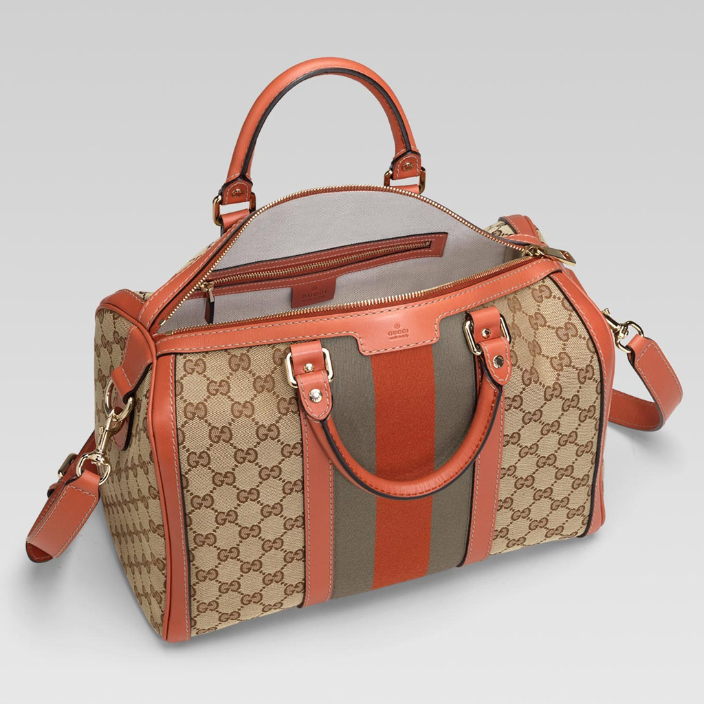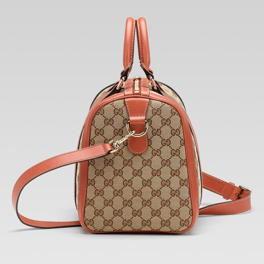 247205 Gucci 古馳 FWCZG 8664 VINTAGE WEB中號圓筒包 淺米色和珊瑚紅色