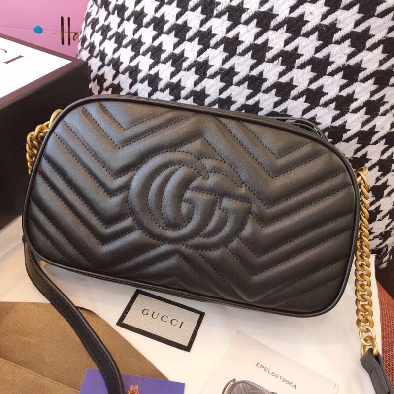 - 447632 Gucci GG Marmont系列小號(hào)絎縫肩背包 古馳相機(jī)包 黑色
