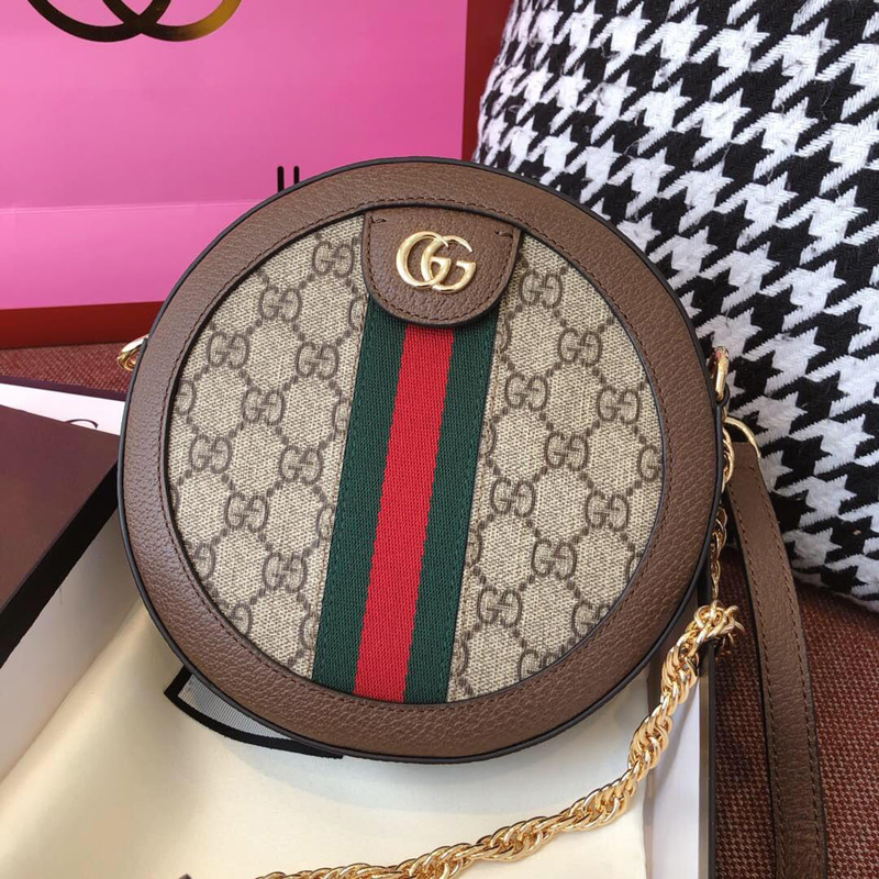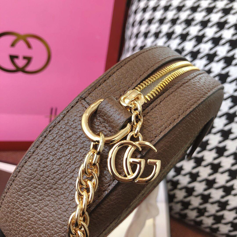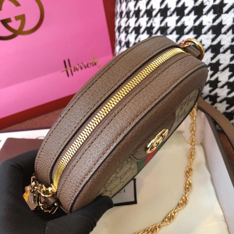 - 550618 Gucci Ophidia系列GG圓形迷你肩背包 鏈?zhǔn)綀A餅包 啡色