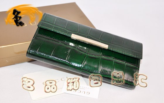 - 112715 GUCCI鱷魚紋錢包 牛皮錢包 古奇錢包 GUCCI長(zhǎng)款錢包 綠色