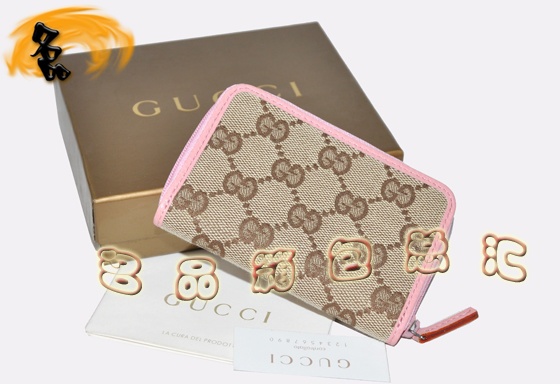 - 138098 Gucci零錢包 Gucci專用雙G花布女士錢包 Gucci短款錢包 古奇女包 杏配粉色