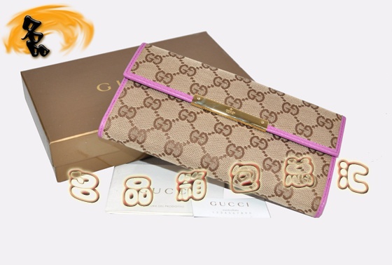 - 141630 Gucci錢包 Gucci雙G帆布錢包 古奇時尚女士錢包 Gucci長款錢夾 杏配桃紅色