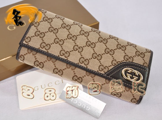 - 181595 古奇經典雙G帆布女士錢夾 Gucci長款錢包 Gucci女包 一比一品質 杏配深啡色