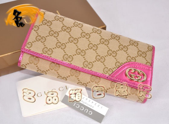 - 181595 古奇經典雙G帆布女士錢夾 Gucci長款錢包 Gucci女包 一比一品質 杏配桃紅色