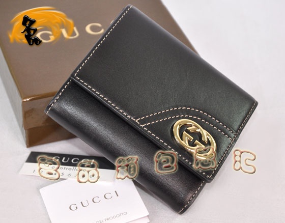 - 181597 Gucci時(shí)尚休閑女包 Gucci短款錢包 Gucci錢夾 Gucci全皮錢夾 黑色