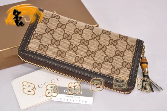 - 224253 Gucci錢夾 Gucci長(zhǎng)款錢包 Gucci錢包 古奇竹節(jié)包 Gucci帆布包 杏配啡色