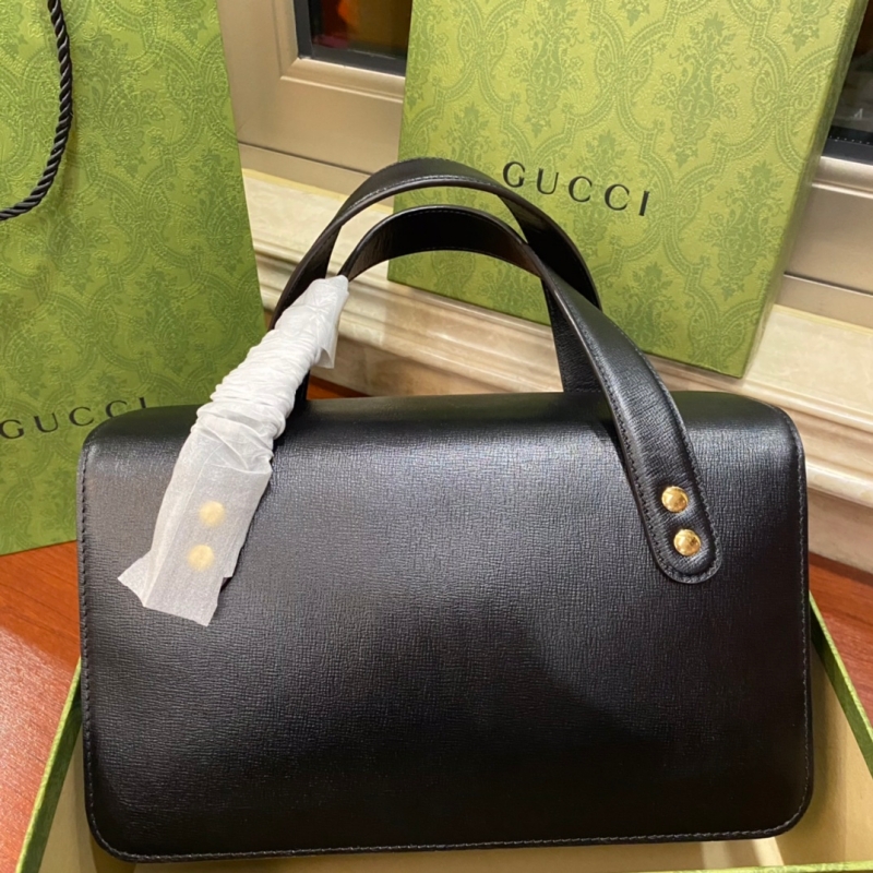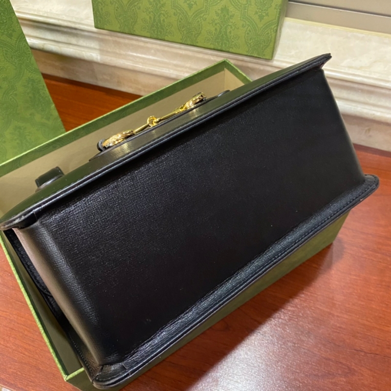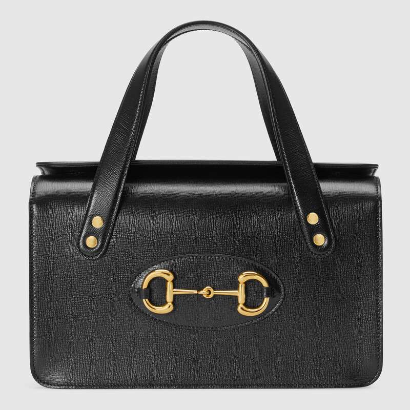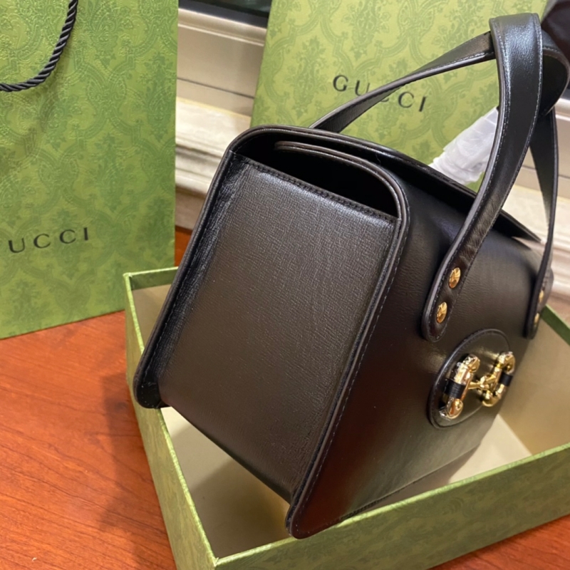 - 627323 Gucci Horsebit 1955小號馬銜扣手提包 復(fù)古風(fēng)格織紋皮革 黑色