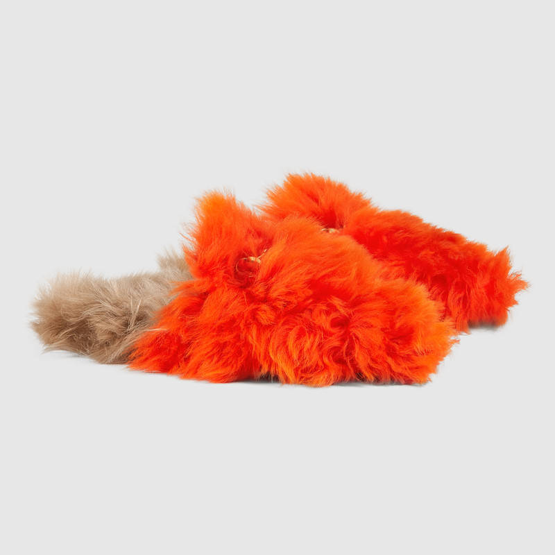 480064 GUCCI Princetown系列 美利奴羊毛 馬銜扣 拖鞋 橘色