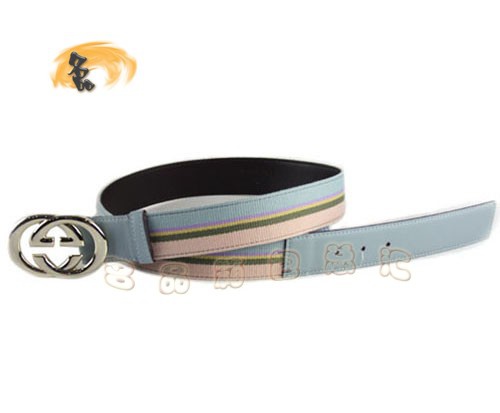 170854 Gucci皮帶 Gucci腰帶 Gucci經(jīng)典款時尚女士皮帶 古奇帆布女士皮帶 粉色配藍(lán)色
