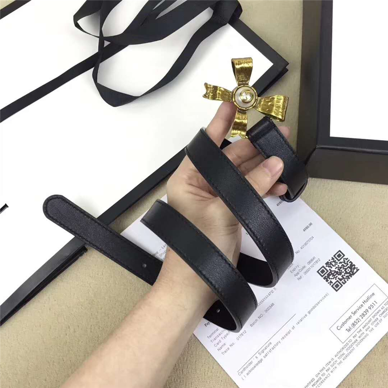 2008114899 Gucci 2017年新款 牛皮 金屬蝴蝶結飾釘 雙G帶扣 女式皮帶 黑色