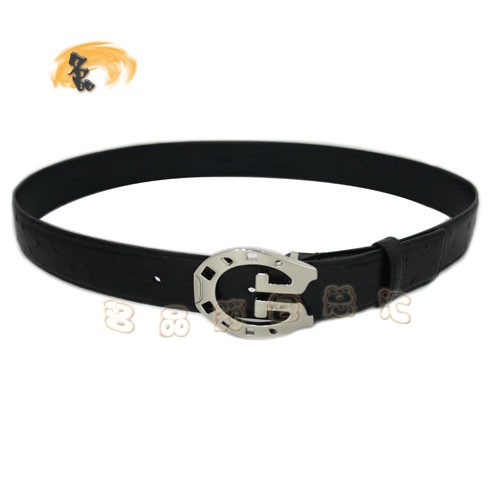 201769 經典馬蹄扣鴕鳥紋古奇男士皮帶 Gucci皮帶 Gucci時尚牛皮男士腰帶 黑色