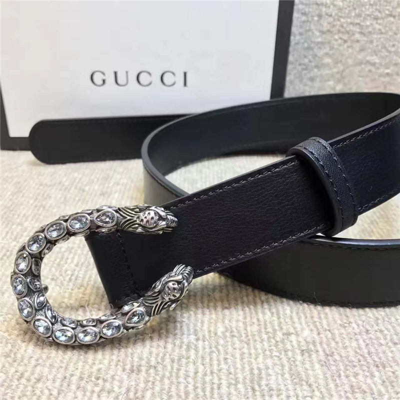 - Gucci 新款 原版牛皮 山茶花中間鑲珍珠雙G 女士腰帶 黑色