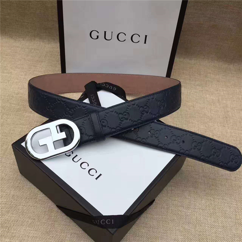 - Gucci 新款 進口原版小牛皮壓花 女士腰帶 雙G扣頭 雙面可用 紅色銀扣