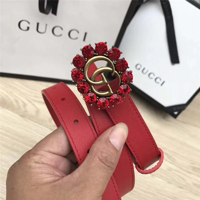 • Gucci 模特走秀款 紅色水晶 雙G帶扣 皮革腰帶 大紅