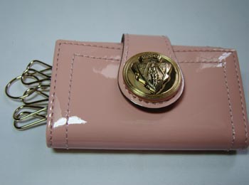 - 190357 GUCCI最新款 GUCCI粉紅色亮皮時尚女士鑰匙包 GUCCI經典款鑰匙包