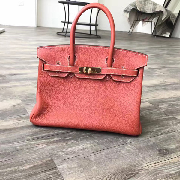 愛馬仕手提包 Hermes Birkin系列 鉑金包 純手工定制版 30cm TOGO皮 棕紅色