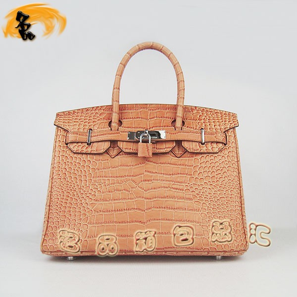- 6088 Hermes手提包 愛馬仕女包 Hermes Birkin 鉑金包 鱷魚紋(30)橙色銀扣