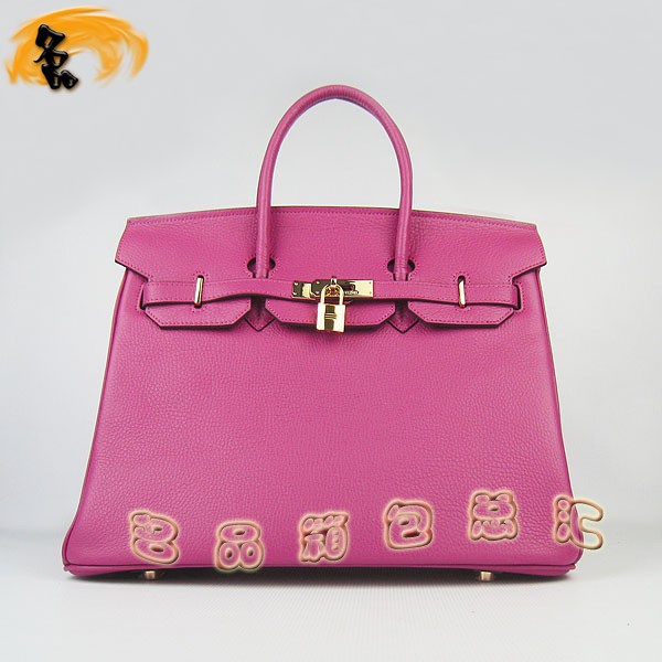- 6089 愛馬仕女包 Hermes手提包 Hermes Birkin 鉑金包 荔枝紋(35) 桃紅色金扣