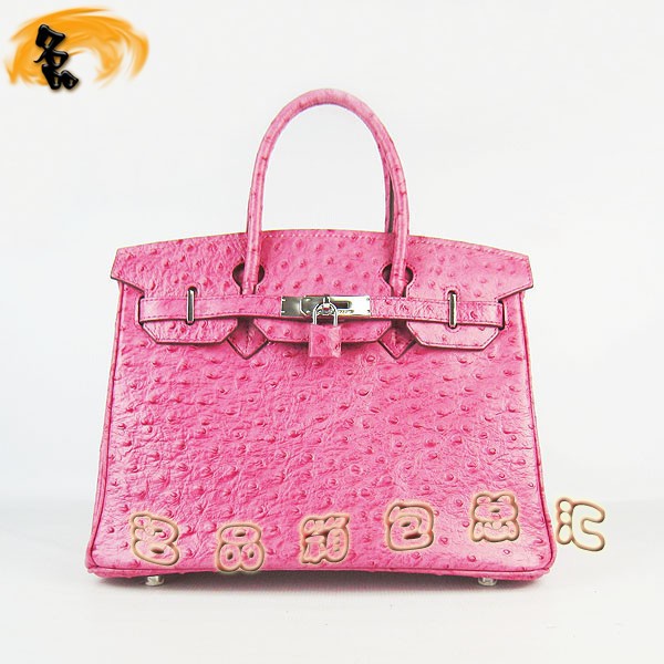 - 6088 愛馬仕女包 Hermes手提包 Hermes Birkin 鉑金包 鴕鳥紋(30) 玫紅色銀扣