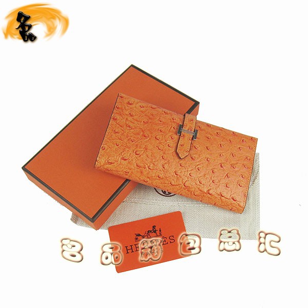 - H005 Hermes錢包 愛馬仕經典H扣兩折錢包 Hermes長款錢包 鴕鳥紋女士錢夾 橙色