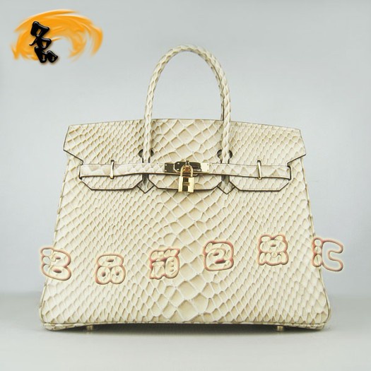 - 6089 Hermes女包 Hermes Birkin 鉑金包 35 魚紋女士手提包 米黃色金扣
