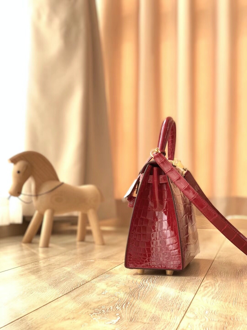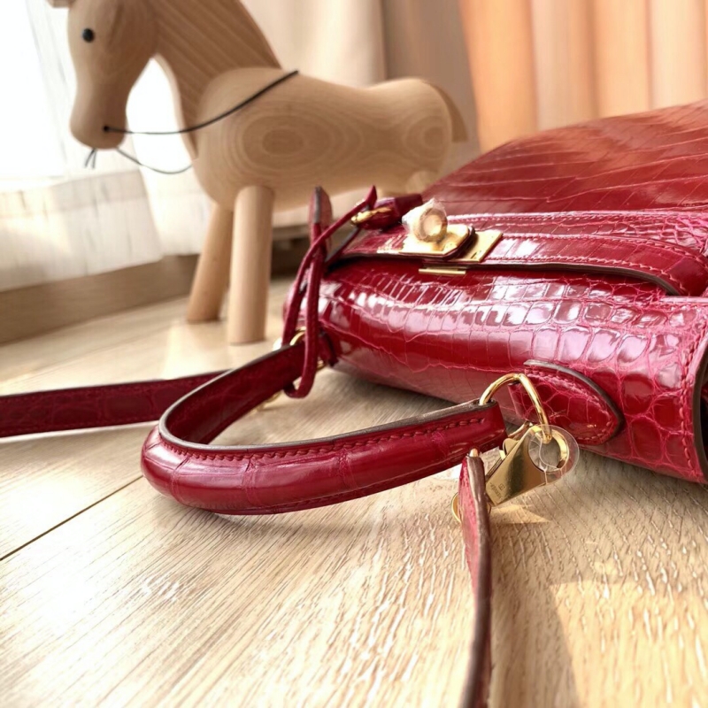 • 愛馬仕Hermes Kelly系列 凱莉包25cm 鱷魚皮 純手工定制版 石榴紅