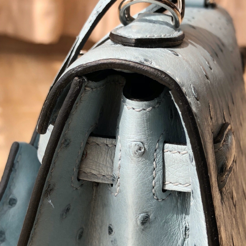 這個鴕鳥皮的和之前買的鱷魚皮的相比,皮料手感更軟,雖然沒有鱷魚皮那么耐磨,但是相對來說更喜歡鴕鳥皮的柔軟,實物比圖片更漂亮,很滿意