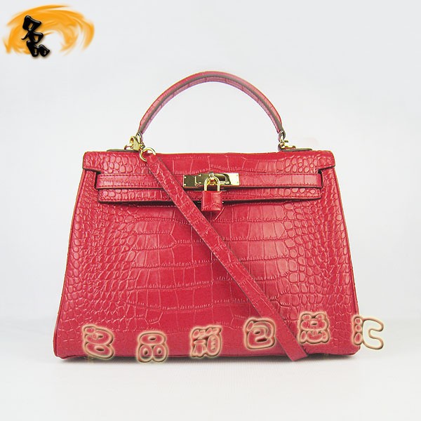 - 6108 Hermes Kelly系列手提包 Hermes女包 凱莉包 愛馬仕斜挎包 鱷魚紋 紅色金扣