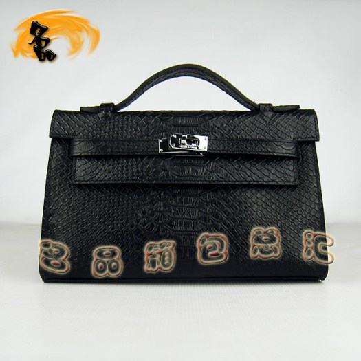 - H008 Hermes Kelly 凱莉包 愛馬仕 蟒蛇紋 女包 Hermes手提包 黑色