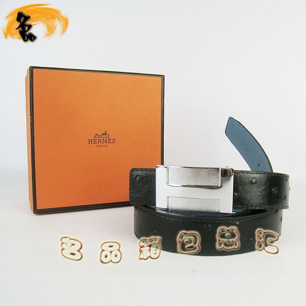 - 439 最新款Hermes皮帶 Hermes腰帶 愛馬仕男款皮帶 鴕鳥紋黑配中藍 銀扣3cm