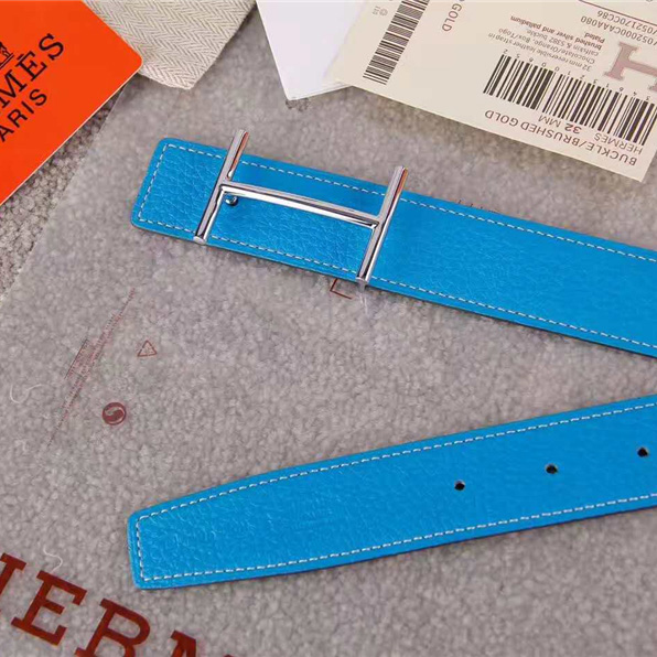 HERMES 2017經典款 進口牛皮 原版 不銹鋼扣頭 銀扣藍色色帶身