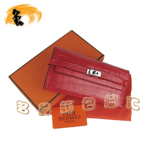 - H009 愛馬仕錢包 Hermes 鱷魚紋時尚女士手拿包 Hermes Kelly系列 紅色