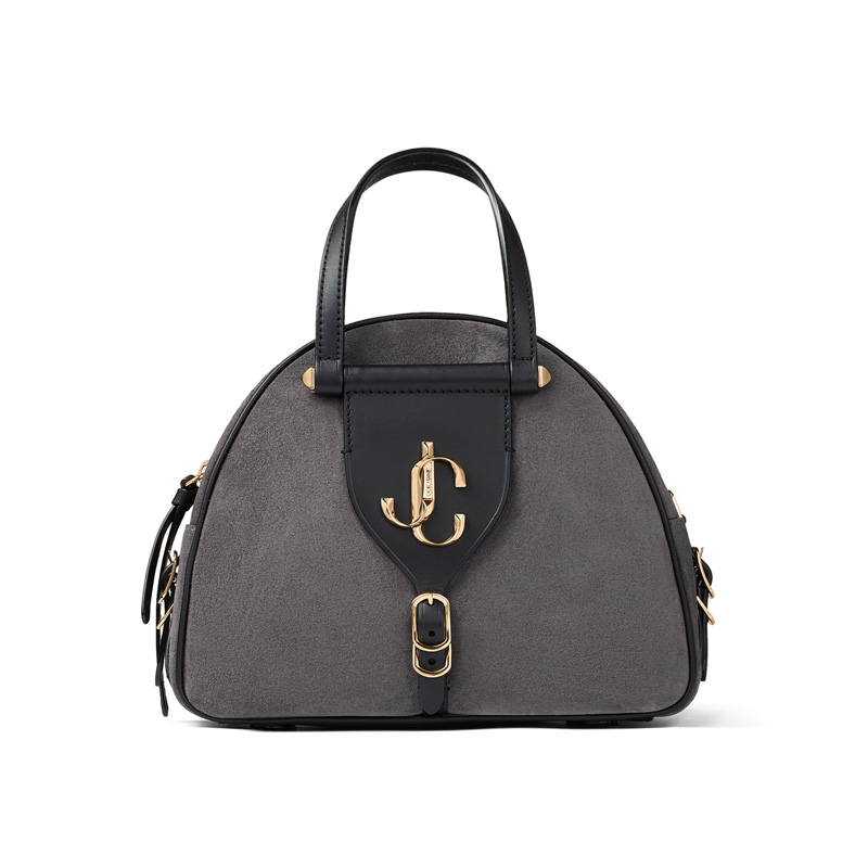 • Jimmy Choo2019秋冬系列 VARENNE BOWLING/S 品牌logo裝飾暮色麂皮拼黑色植鞣皮保齡球包