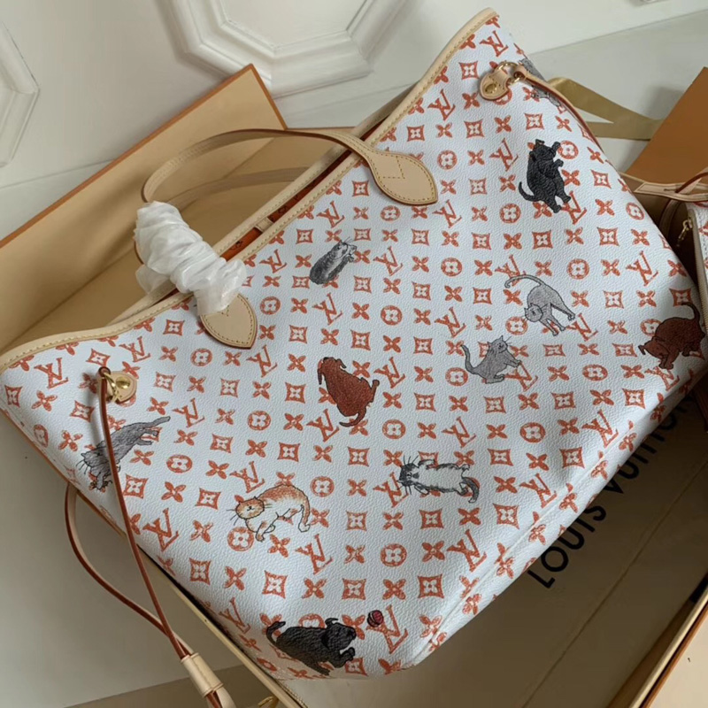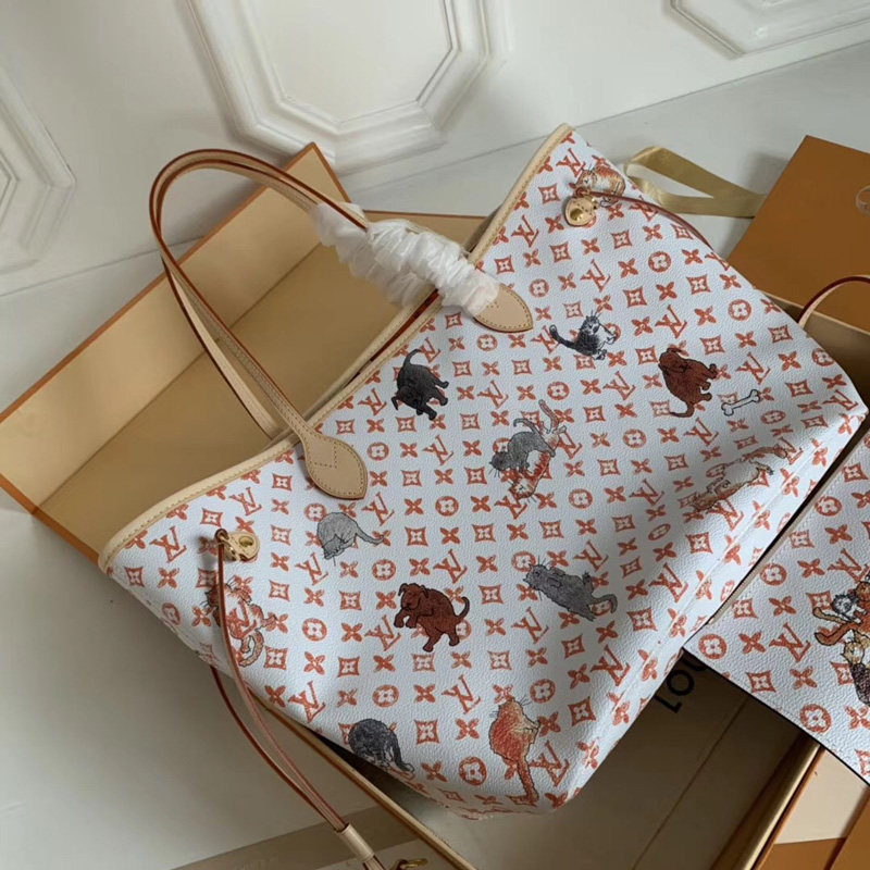 - M44459 LV NEVERFULL 中號(hào)手袋 LV2019貓犬圖案新款女包 LV購(gòu)物袋 限定款
