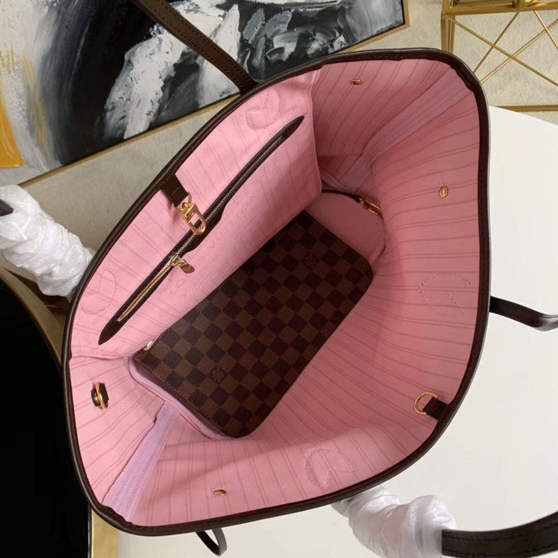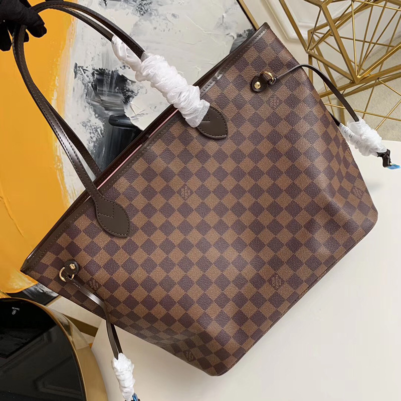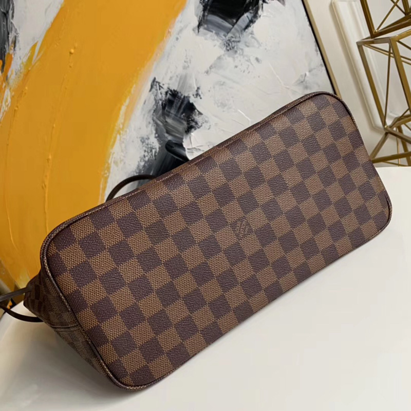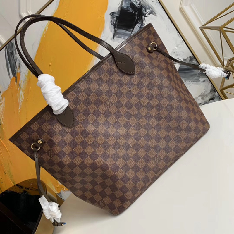 - N41603 LV Neverfull 中號(hào)手袋 Damier Ebene咖啡格 LV購(gòu)物袋