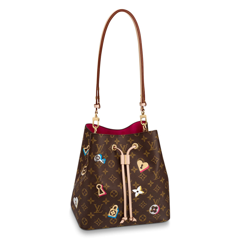 • 詳細介紹:來自2019春季系列的NéoNoé手袋飾有鎖扣、鑰匙和花朵圖案:象征著愛情與路易威登旅行傳統。金屬光圖案與經典的Monogram帆布渾然天成,為其百搭造型帶來“精雕細琢”般的質感。風格迷人,值得珍藏,理想的情人節禮物。