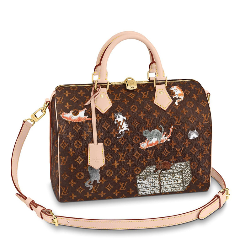 • 詳細介紹:此款來自2019早春系列的Speedy手袋由女裝藝術總監Nicolas Ghesquière與造型師Grace Coddington聯手打造,以Catogram花紋向二人的愛寵致敬。采用路易威登經典Monogram帆布材質,飾有活潑可愛的貓犬圖案。風格休閑,功能實用,日常造型的理想配飾。