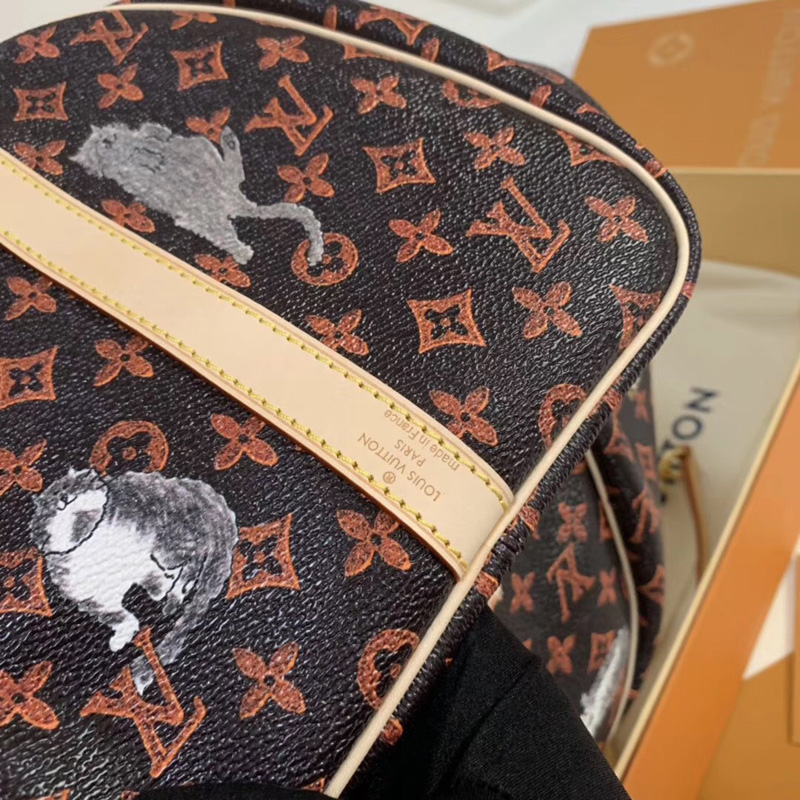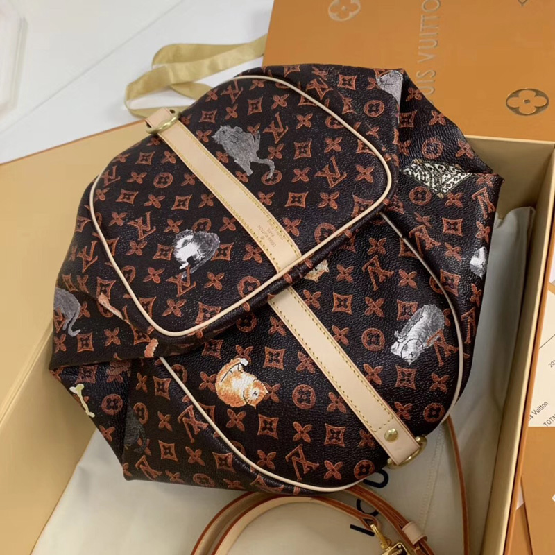 • 結構:棕色與橘色 Transformed Monogram帆布 做舊版天然牛皮飾邊 Catogram浮紋印花 Grace Coddington簽名版老鼠印花帆布內襯 金色金屬飾件 1對Toron手柄 可拆卸、可調節皮質包帶 安全的拉鏈開合,配有掛鎖 D形環 雙層智能手機口袋 多種背攜方式