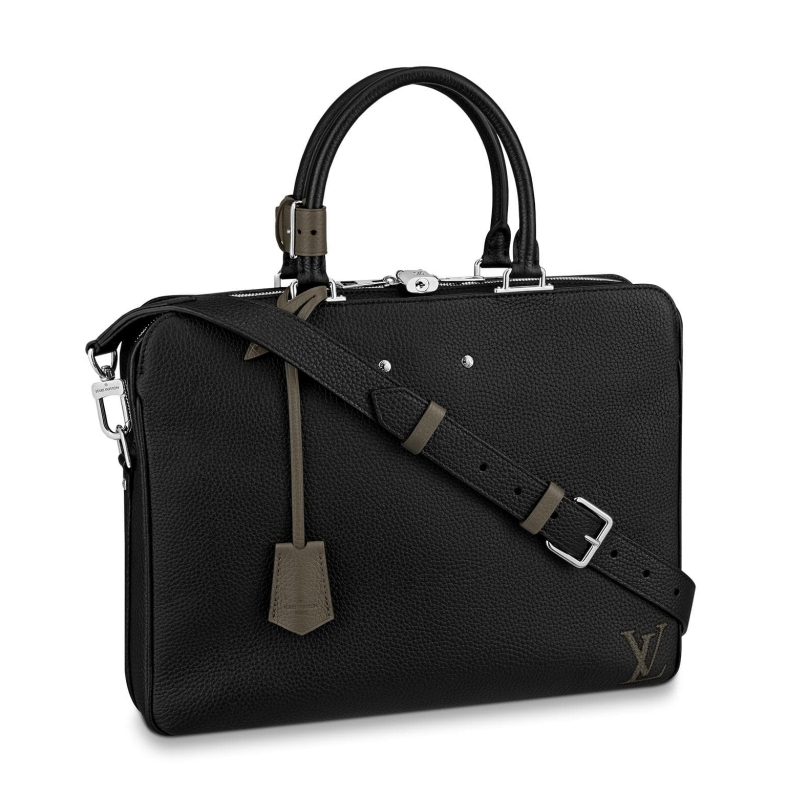 M55227 LV ARMAND 中號公文包 Taurillon 粒面牛皮手提包 黑色
