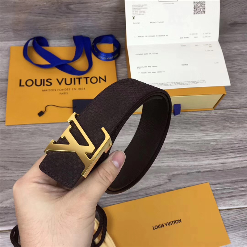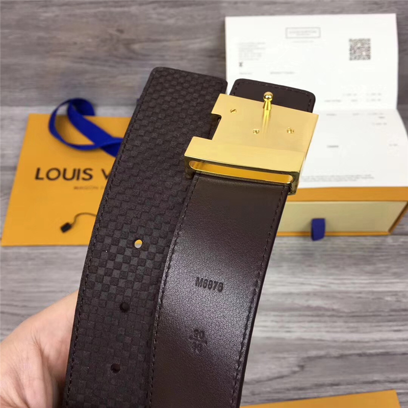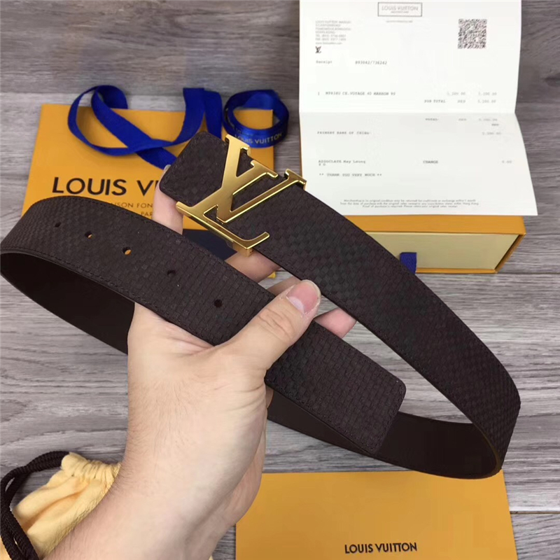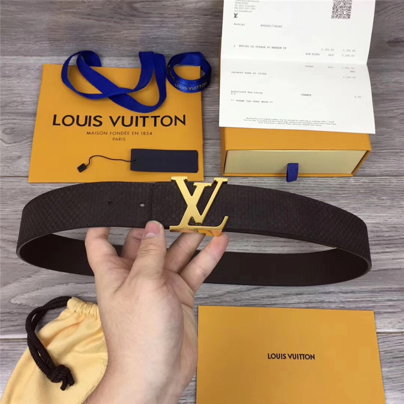 M6875 LV路易威登 絨面小米格 時尚小牛皮 男款腰帶 棕色