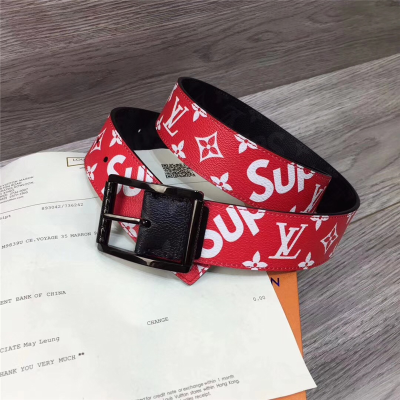 M6897 Louis vuitton 路易威登 Spreme聯名 休閑款男士腰帶 紅色金扣