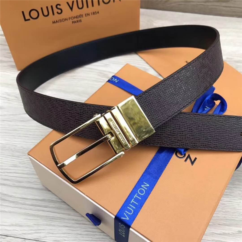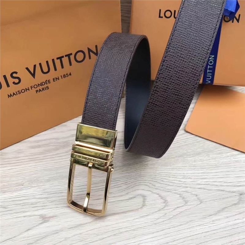 MP027 LV 專柜新包裝 轉(zhuǎn)動扣 手工縫線 雙面可用 LV男士腰帶 啡色