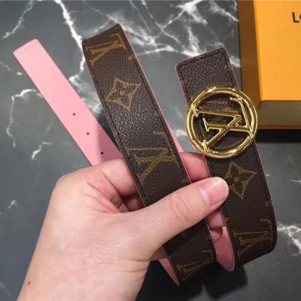 • LV 新款 LV Circle 圓形LV字母 鋼扣 雙面腰帶 啡配粉紅