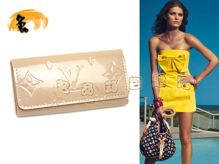 - M91544 LV新款壓花時尚女包 LV鑰匙包 LV鑰匙扣 LV漆皮包 4鑰匙扣 杏色
