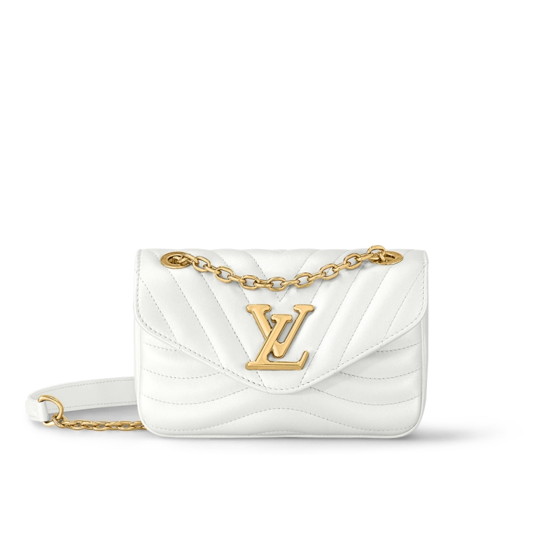 M20988 LV NEW WAVE 小號鏈條包 絎縫牛皮單肩斜挎包 白色